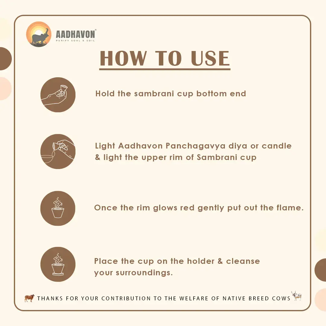 Our Cow Dung Cup Sambrani is crafted with care, starting with the drying and finely powdering of cow dung. A natural binding agent from trees is added to form cup-shaped sambrani. Flavors are then delicately infused to create a fragrant experience.