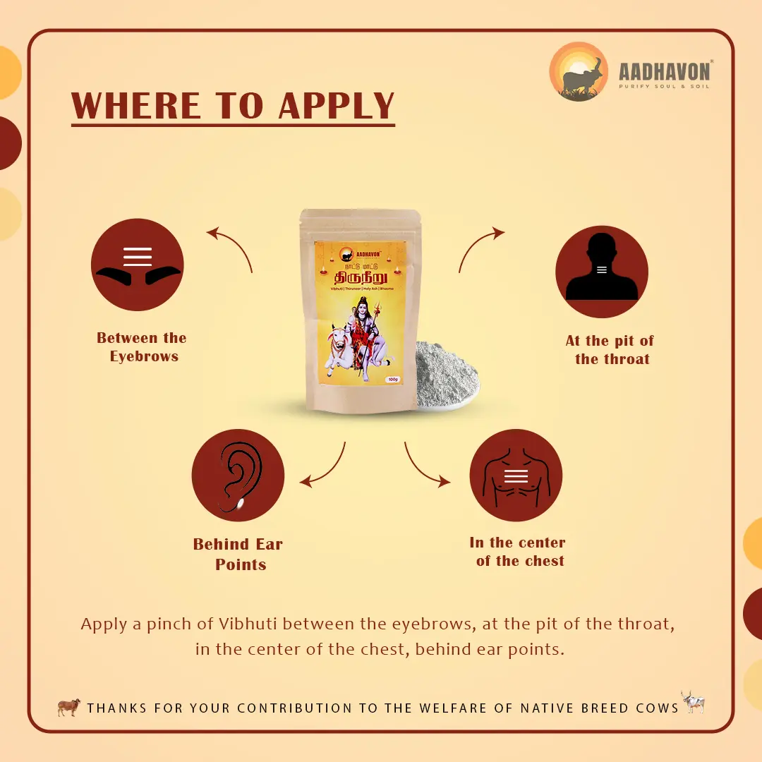 We meticulously create Viboothi by forming fresh cow dung into balls, which are then left to dry for a week. Subsequently, they are ceremonially burnt on the auspicious occasion of a full moon day, resulting in sacred ash.